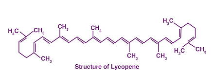 Lycopene (C₄₀H₅₆) is a naturally occurring, polyunsaturated acyclic carotenoid characterized by 11 conjugated double bonds, which are responsible for its strong antioxidant activity. Unlike β-carotene, lycopene does not possess provitamin A activity. However, it is regarded as one of the most efficient singlet oxygen quenchers among dietary carotenoids, demonstrating greater antioxidant capacity than β-carotene and α-tocopherol.